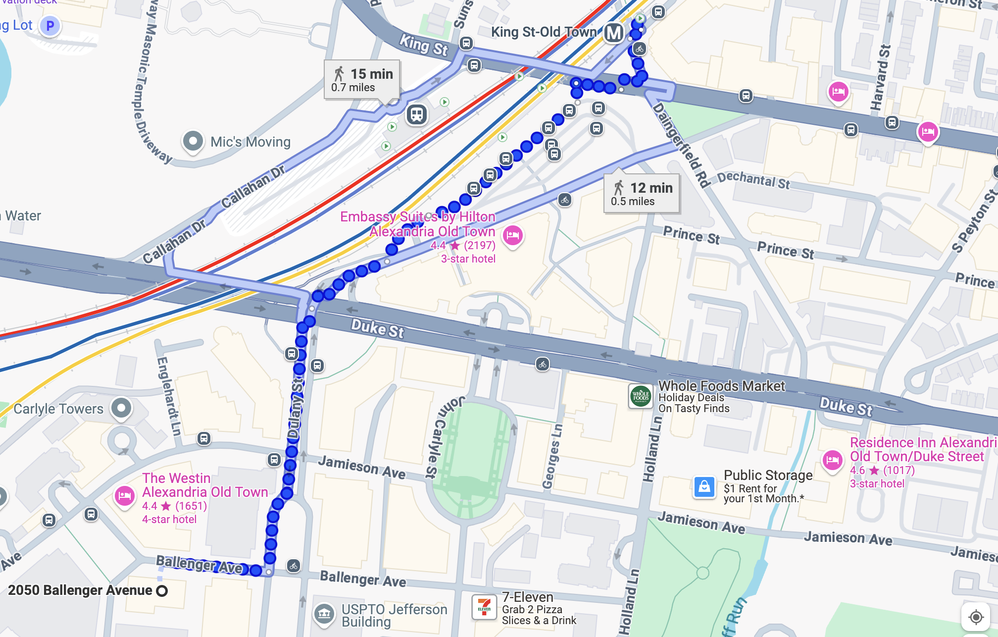 The O'Grady Center is a 10-minute walk from the King Street Metro station (blue and yellow lines), as shown on the map to the left.
